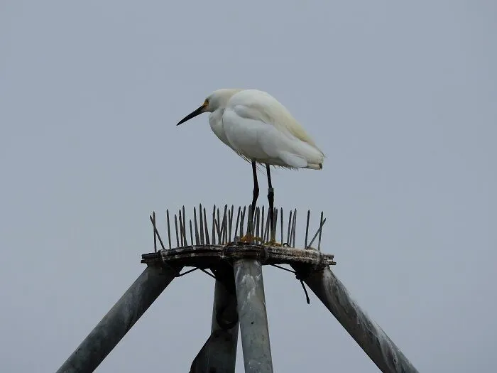 30. Вообще наплевать: цапля стоит на платформе для отпугивания птиц