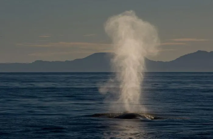 А дышат киты, особенно крупные, очень эпично. При выдохе вся масса горячего, насыщенного парами воды воздуха из лёгких устремляется через маленькую дырочку и выталкивает любую воду, оказавшуюся на её пути. Получается впечатляющая струя воды и пара высотой до 6 метров. Причём её высота и направление уникальны для каждого вида.