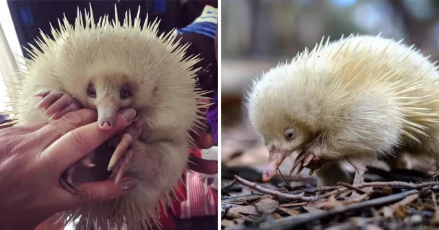 В белом окрасе ехидна выглядит ещё более странной, чем обычно