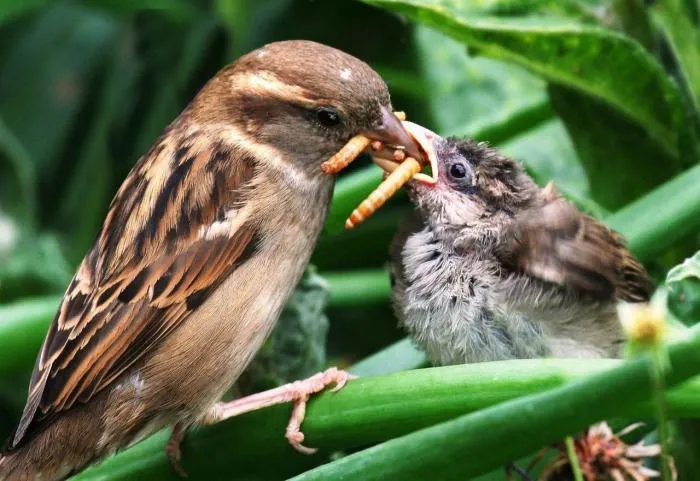 Пернатые изменяют свою диету из-за малышей. Им требуется больше белка, чем взрослым, поэтому их кормят почти исключительно животной пищей.