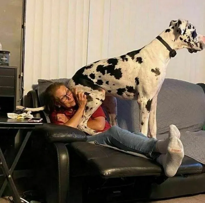 Забавно наблюдать, как доги пытаются сидеть на диване