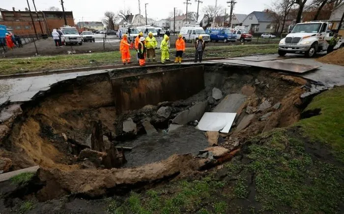 31. Автомобиль, за рулём которого была женщина, упал в огромную воронку. 3 июля 2013 года, Толедо, США. В итоге женщину удалось вытащить, никаких травм она не получила
