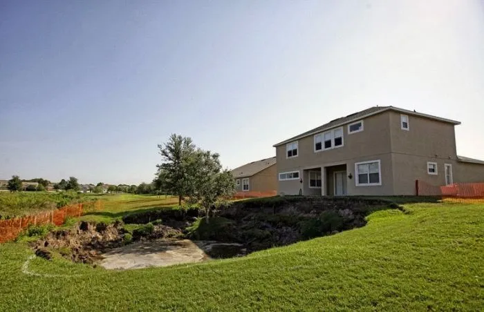22. Дом рядом с воронкой шириной 30 метров и глубиной 15 метров. Уиндермир, США, 5 мая 2012 года