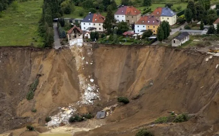 24. Посёлок Нахтерштедт в Германии, 18 июля 2009 года. Там обвалилась дорога и дом, три жителя которого до сих пор числятся пропавшими без вести