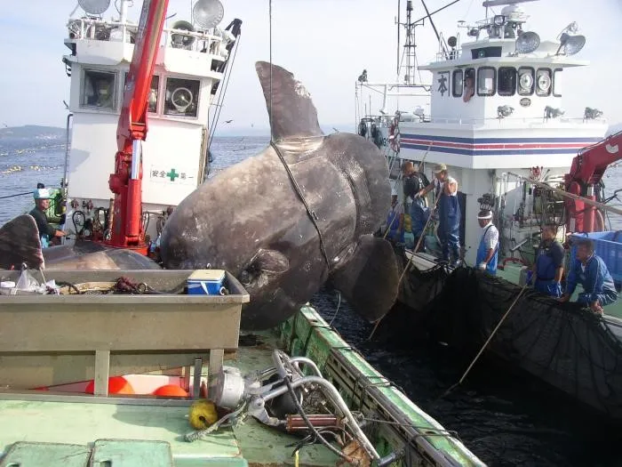 Рыба-луна огромная – самый крупные особи достигают 1 тонны. Рекордсмен весил 2744 килограмма — это абсолютный рекорд для костных рыб.