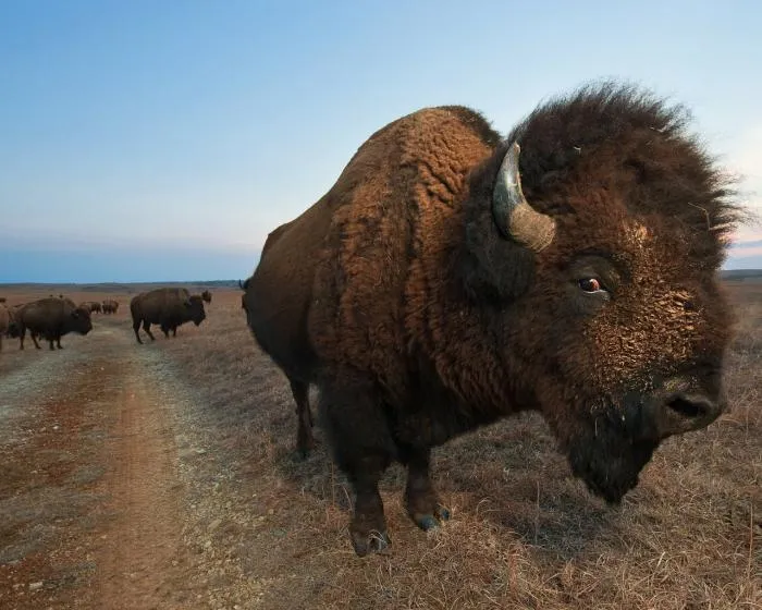 Бизоны поэтому довольно смелые животные, так как естественных врагов у них практически нет. Один на один они проигрывают разве что медведю. Да и у мишки нет особой мотивации затевать дуэль с бизоном