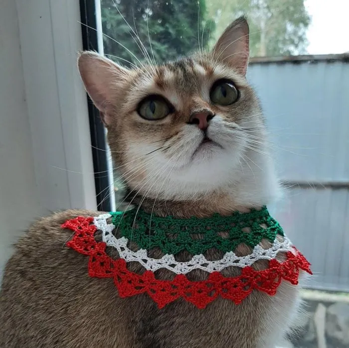 Ажурный ошейник крючком для кошки или маленькой собачки.