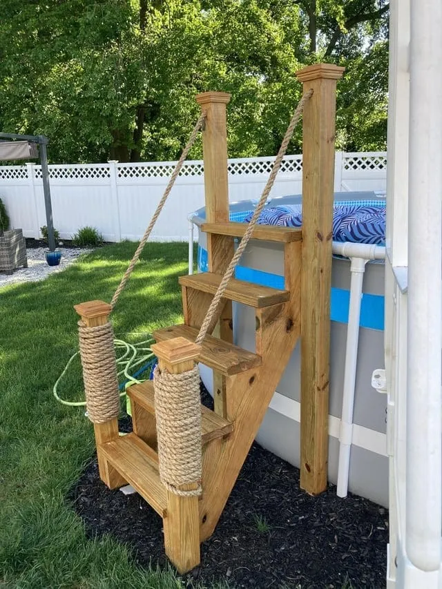 Моя старенькая собака любит плавать, но не может подняться по лестнице, поэтому я сделал для неё новую удобную лесенку в бассейн.