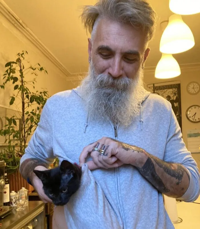 9. Это мой шурин через две недели после того, как он не хотел брать кота из приюта