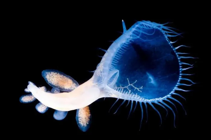Мелибе — это морской голожаберный моллюск из семейства Тетидид, класса брюхоногих моллюсков. Прославились эти ребята благодаря своему крайне необычному виду — сколько ни смотри, а на улиток не похожи ни капли! Они вообще мало на что похожи. Описать внешность мелибе в двух-трёх словах совершенно невозможно, поэтому будем рассказывать обо всех особенностях по частям.