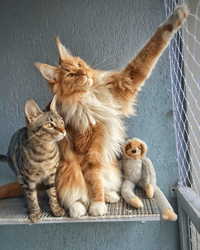 Для других кошек мейн-куны настоящие великаны