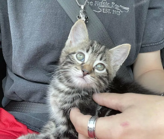 7. "Наш новый котёнок. Нашли на парковке рядом с мамой-кошкой, которая, к сожалению, была мертва. Спустя пару недель заботы, малыш выглядит счастливым"