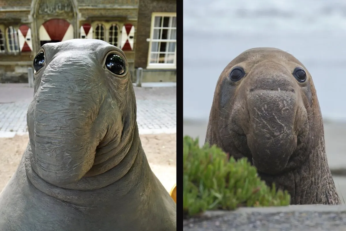 Северный морской слон является не только прототипом Ждуна, но и одним из крупнейших представителей ластоногих. Взрослые самцы вырастают до размеров минивэна: 1,5-2 тонны веса и 5 метров в длину! В комплекте идёт буйный нрав, мощные челюсти и острые клыки — всё для того, чтобы захватить участок пляжа и завладеть гаремом самок. Зверей отличают очень жестокие схватки между самцами, в которых весь песок орошается кровью, а сами слоны часто гибнут.