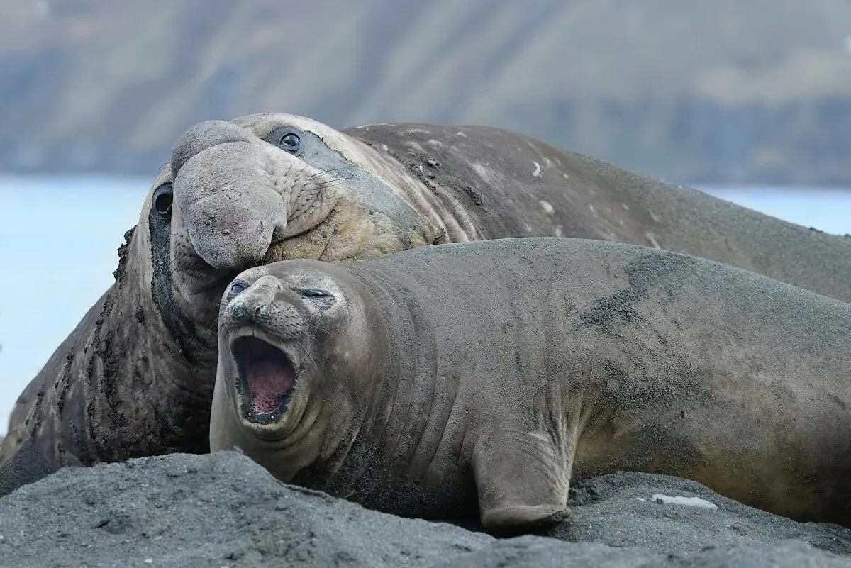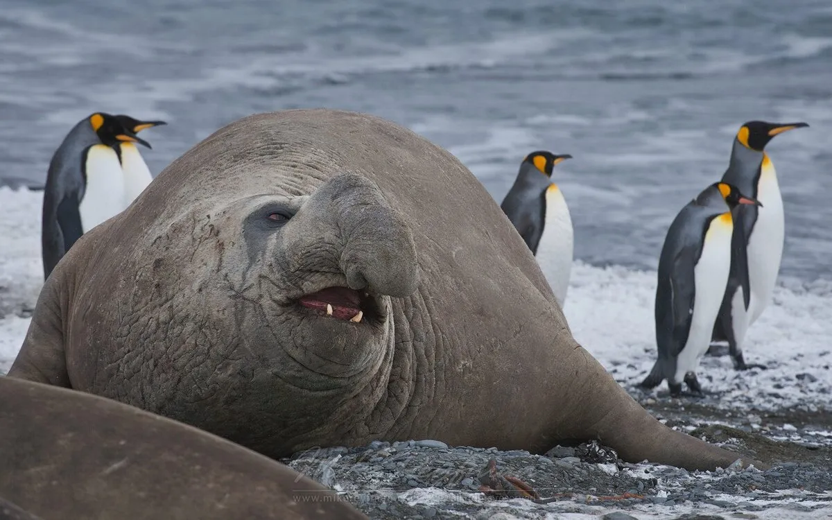 А южные морские слоны — это ещё более крупные и жестокие создания. Их можно встретить уже на субантарктических территориях, но мы расскажем про них в следующий раз.