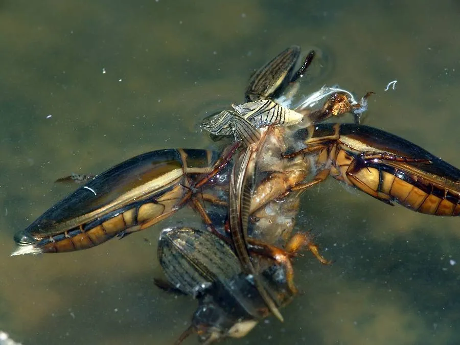 Единственное место, где можно спастись от жучьих психов — водоёмы с более крупными хищниками. Но если хищные рыбки попытаются полакомиться плавунцами, их ждёт разочарование. Пойманный жук выделяет ядовитую жидкость, вынуждающую обидчика отпустить его.