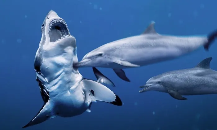 Учитывая опасность, акулы стараются избегать группы дельфинов. При этом поводом к отступлению может стать стая всего из 2-3 особей.