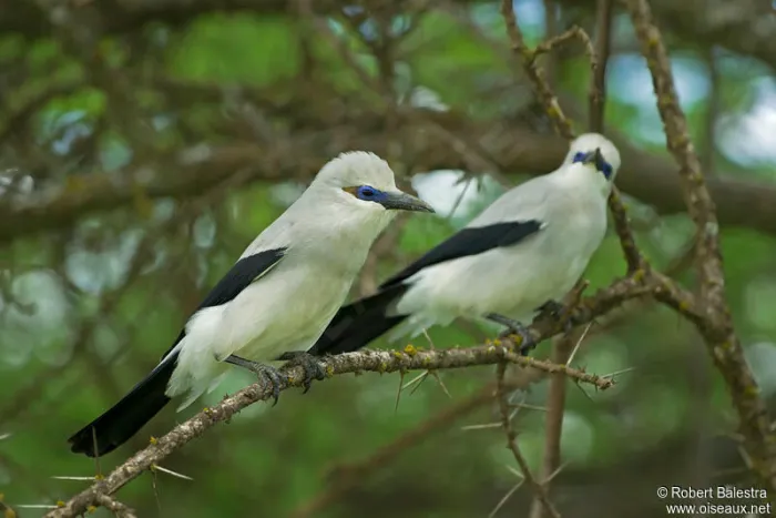 Когда птица возбуждена, синие круги вокруг её глаз становятся ярче.
