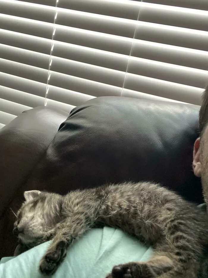 4. "Подобрали этого одинокого кота, и теперь он безмерно благодарен нам"