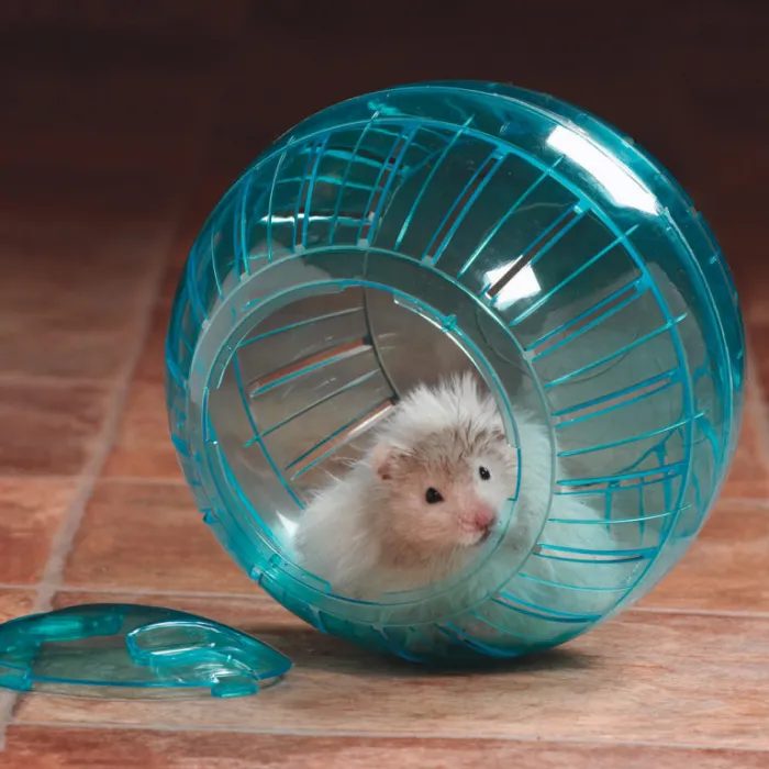 Кстати, если вы хотите позволить питомцу погулять, не используйте для этого пластмассовые шары! Хомяку в этой штуке неимоверно страшно. Плюс зверёк может получить травму лап или попросту задохнуться.