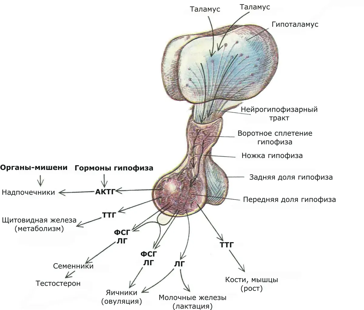 С сезонной линькой всё сложнее. Чтобы не опростоволоситься и не переодеться в зимнюю шкурку посреди лета, животным пришлось разработать мудреную систему гормонального контроля. Усреднённый рецепт следующий. Для начала берём глаза и смотрим ими на солнечный свет. Если его много, тогда линять пока не нужно, ходим в чём есть. Когда световой день сокращается, зрительные доли мозга посылают сигнал в гипофиз, и тот тормозит выработку тиреотропного гормона. ТТГ, если кратко.