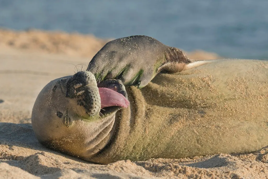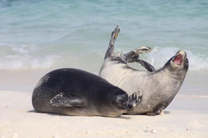 А вот габаритами гавайцы практически не отличаются от всех остальных видов тюленей. Самцы-монахи вырастают до 2 метров и набирают при этом до 180 килограмм. Монашки же могут похвастать 2,4 метровой тушкой и солидными 270 килограммами. Но, несмотря на то, что дамы в полтора раза больше своих кавалеров, им вечно достаётся от агрессивных альфачей! Дело в том, что популяция тюленей во время перелова в 20 веке сильно уменьшилась. А после того как приняли меры по сохранению ластоногих, в первую очередь восстановилось поголовье самцов. Соотношение м/ж на Гавайях очень сильно пошатнулось, отчего монахи стали вести себя совсем не по-божески!