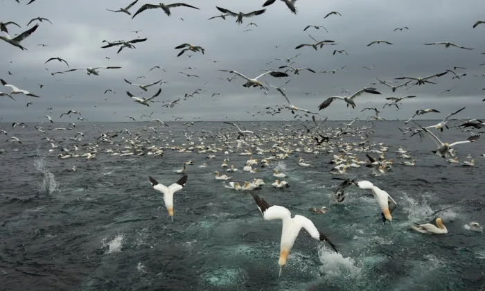 Но самое интересное начинается во время охоты. В поисках рыбьих косяков олуши пролетают до 320 километров от мест гнездования. Особого различия при выборе добычи птицы не делают — чем жирнее, тем лучше!