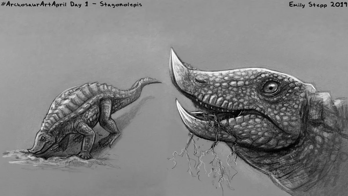 Ну, современные только мясом и питаются. А вот стагонолепис из отряда этозаврий выбрал путь вегана! Этозавриды — это ветвь удивительных рептилий, которые являлись дальними родственниками наших крокодилов. Их остатки встречаются практически по всему земному шару, а стегонолеписа откопали в позднетриасовых отложениях Германии, Шотландии и Польши.
