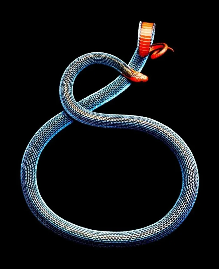 Всё-таки аспид имеет кое-что, чего у питона нет — яд. И яд этот уникальный. Мало того, что животина обзавелась огромными железами в четверть туловища, она ещё и пользуется ядом, как у пауков и скорпионов. Пока другие змеи имеют на вооружении нейротоксины, то есть отраву, ломающую или разрушающую нервную систему, коралловый аспид применяет цитотоксины.