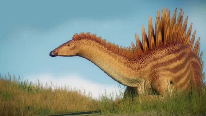 Рептилия относится к семейству стегозаврид и на первый взгляд не очень-то от них и отличается. Четыре ноги, маленькая голова с беззубым клювом, два ряда пластин вдоль спины и шипы ближе к кончику хвоста. И это при длине тела около 6 метров и 2 тонн веса.