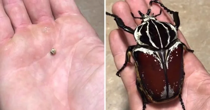 Просто удивительно, как из такого крошечного яйца может со временем вырасти насекомое, которое едва помещается на ладони.