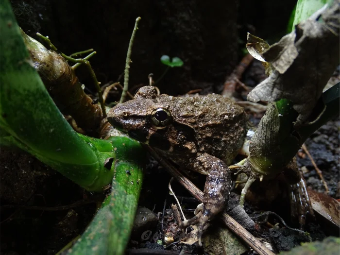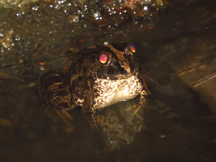 Но тут, как оказалось, размер имеет значение. Просто крабоядная лягушка, будучи сходных размеров с нашими озёрными, выбирает цели себе по беззубым челюстям, то бишь помельче. Её добычей становятся мелкие крабы и любые другие животины подходящего размера: ракообразные, насекомые и даже другие лягушки.