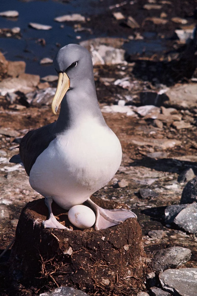 Но свою любовь юный пернатый найдёт лишь через год. Она у него будет первая и единственная — альбатросы создают пары на всю жизнь. Вместе они соорудят пьедестал, чтобы гарантировать единственному яйцу защиту от острых и холодных камней. Любые предосторожности важны, если ты выхаживаешь всего одно дитё раз в 2 года, а численность твоего вида не превышает 15 тысяч птиц.