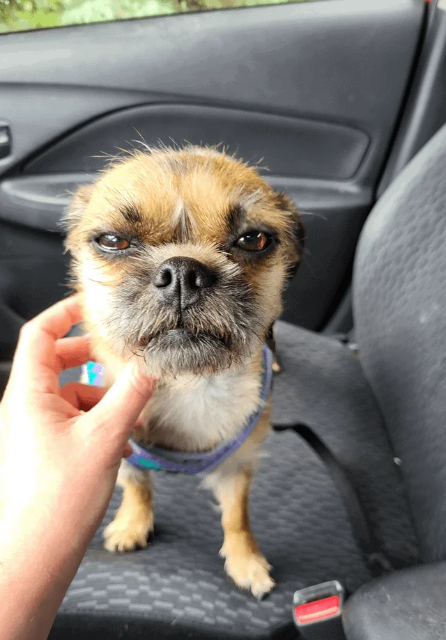 Некоторые собаки делают щенячьи глаза, чтобы что-то получить. Моя же собака делает сварливое лицо старика.