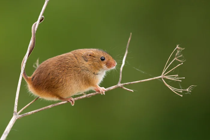 И если представить, что высокие травы — это деревья, то из малютки вышел отличный житель верхнего яруса леса. Эта мышка обожает карабкаться по стеблям травы. Она настолько в этом преуспела, что приобрела обезьяньи привычки. Грызун пользуется хвостом как дополнительной конечностью, на которой можно повиснуть. Особенно это полезно при поедании зёрен прямо с колоска.