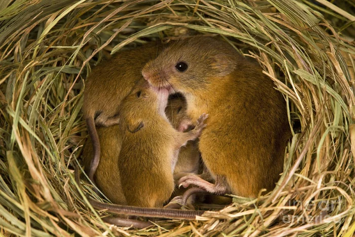 А кормить детёнышей приходится 24 часа в сутки. Одно хорошо — мышки активничают и днём, и ночью. Просто раз в несколько часов они заваливаются спать на 10-15 минут. Поэтому такой распорядок дня матери по силам. Настолько по силам, что самки рожают 2-3 раза за сезон. На полный цикл выращивания потомства, от оплодотворения до выхода мышат из гнезда, уходит всего 30-35 дней. А если это первый помёт в году, то у мамы есть шансы стать бабушкой уже в августе.