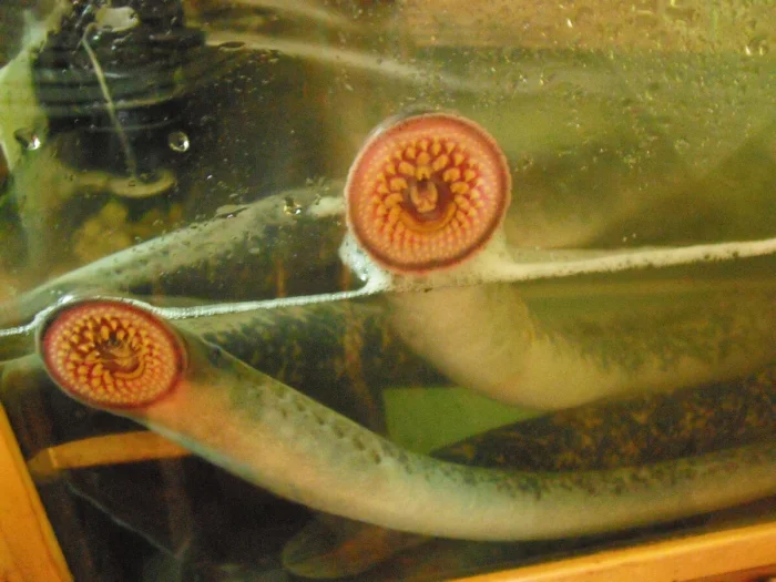 Морская минога — один из 40 ныне живущих видов миног. И все они выглядят как какая-то наркомания. Длинное угреподобное тело, зубастый рот-присоска, расставленные по бокам глаза, полоумно смотрящие на окружающую действительность. Страшно представить, как потрепало бедную рыбу, что эволюция превратила её в ЭТО. Есть лишь одно «но». Миноги — не рыбы! Это отдельная ветка эволюции живых существ!