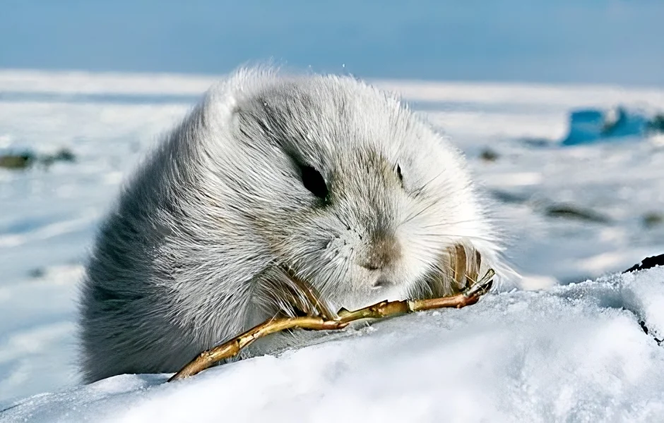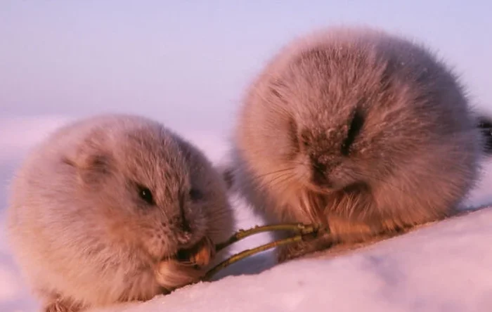 Второе приспособление — двойная защита от невзгод внешнего мира из густого меха и жира. Жировые отложения выполняют двойную функцию: сохраняют тепло и служат резервным источником питания. Нагулять вес зверьку не сложно, потому как ест лемминг даже то, на что другие грызуны не посмотрели бы. Листья, кора, ветки — всё, что возможно найти в тундре. Более питательные вкусняшки: ягоды, зерна и травы грызун запасает в хранилища. Всего лемминг способен насобирать 8 килограмм съестного добра!