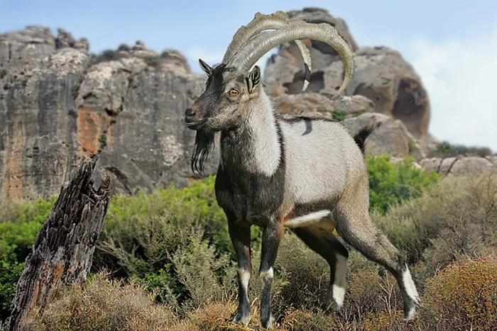 Наш герой в своём облике воплощает горскую удаль, силу и гордость. Коренастый корпус на слегка заниженной подвеске отъедается до 95 кг и метра в холке. С козлячьм достоинством у полорогого тоже всё в порядке. На морде лица красуется сразу два украшения. Первое — густая длинная бородка, за которую безоаровых козлов ещё называют бородатыми. Второе — роскошные рога-ятаганы длиной до 1.4 метров!