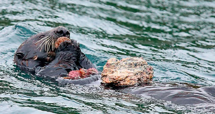 Потребность в жёсткой экономии ресурсов привела к неожиданным результатам: Каланы научились пользоваться орудиями труда! Они разбивают раковины моллюсков друг о друга, а панцири раков вскрывают при помощи камней.