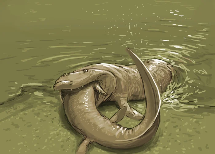 Но мелководья рыбина покидала нечасто. Обычно она залегала на дне мутной речушки и медленно покачивала треугольной головой на короткой шее, словно крокодил какой-нибудь. Древняя недоамфибия выжидала неосторожную добычу и скрывалась от взглядов опасных хищников. Впрочем, врагов у неё было немного. Гиганта длиной в 2,7 метра так просто не слопаешь.
