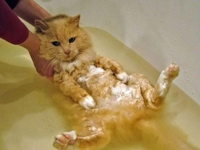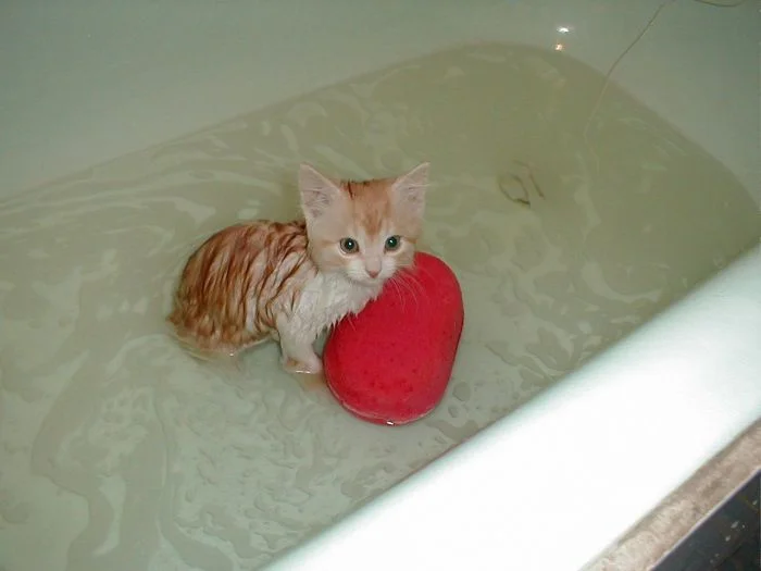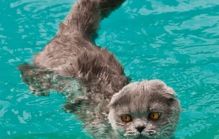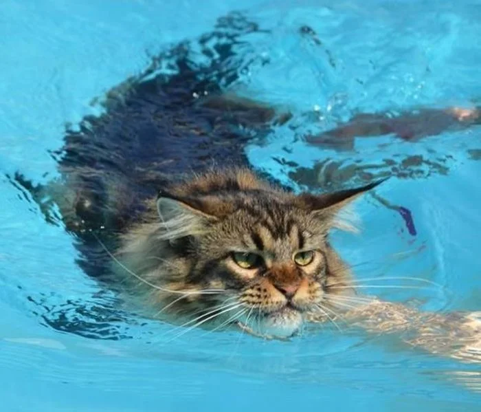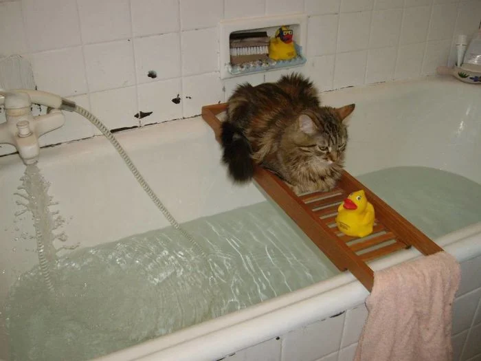 Но среди котеек встречаются экземпляры, которые переносят водные процедуры вполне себе благосклонно и даже не прочь расслабиться, подрейфовав на спокойной глади. Видимо, что-то в этой мокрой и гадкой водице всё же есть.