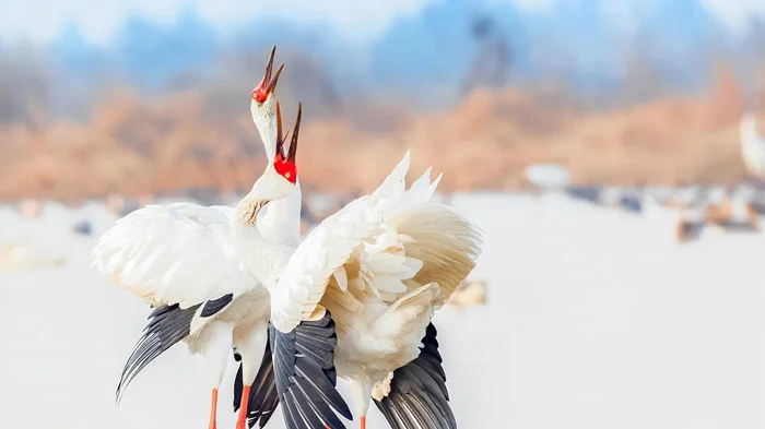 Но гастрономические прогулки приходится заканчивать, когда на горизонте маячит полярная зима. Заметно округлившиеся журавли поднимаются на крыло и отправляются на курорты. Если человеки массово летят в Египты и Турции, то стерхи признают для зимовки лишь одно единственное озеро — Поянг Ху на юге Китая. Но это продлится ровно до тех пор, пока не наступит весна, и они опять не сорвутся в тундру!