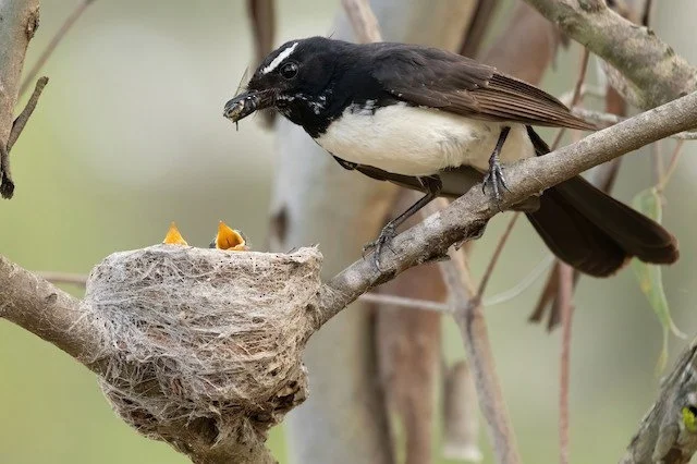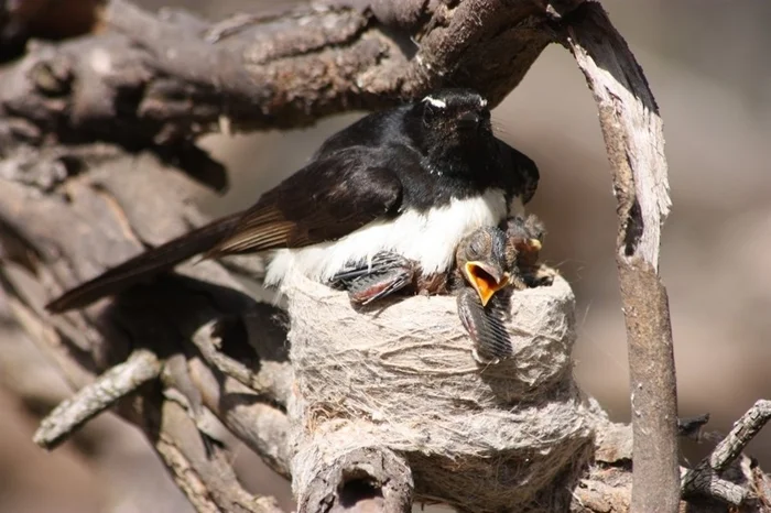 Чёрно-белая веерохвостка — небольшая интересная птичка родом из подотряда певчих воробьиных. Они вырастают до 21,5 сантиметра в длину и весят при этом всего то 18-24 грамм, примерно как привычная нам синичка. Зато с виду эти пернатые куда интереснее! Издалека кажется — вроде ничего необычного, птица как птица. Но вот вблизи... Брови! На чёрной голове красуются самые настоящие белые бровки, как будто веерохвостка и правда выпала из игры про злобных птичек. Ещё бы, в Австралии попробуй выглядеть по-другому, сразу ведь съедят!