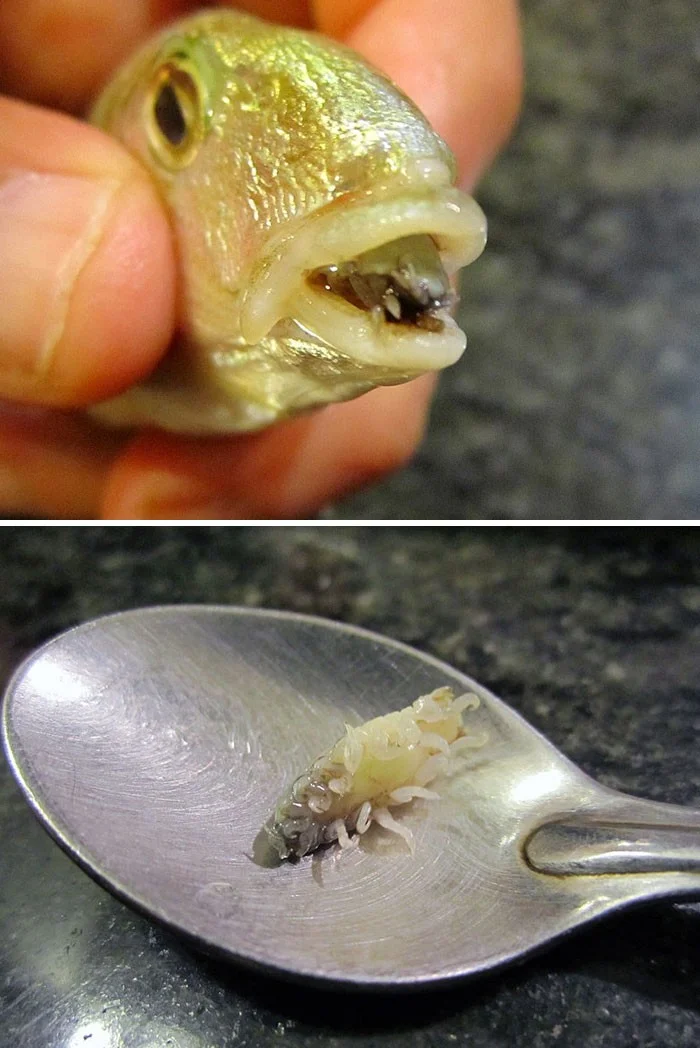 Бразильская светящаяся акула (cookiecutter shark, "акула — формочка для печенья"). Выкусывает/вырезает из тела жертвы крупные куски округлой формы.