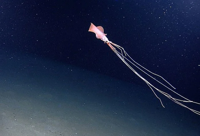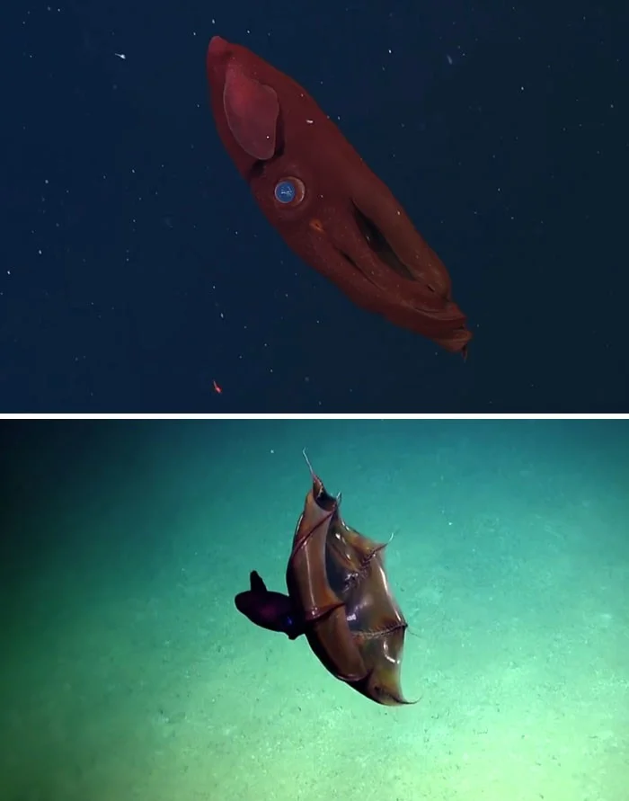 Антарктический глубоководный (колоссальный) кальмар, длиной до 14 метров и весом до полутонны. Он больше и злее "гигантских" кальмаров и достаточно велик, чтобы охотиться на кашалотов.