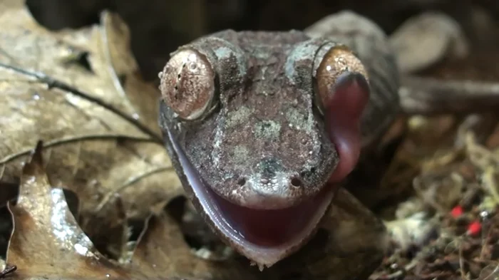 Но не только изменения в конструкции заставляют животин натягивать язык на глаз. Иногда это просто жажда. Намибийский перепончатопалый геккон превратил свои немигающие глаза в инструмент выживания в пустыне. На рассвете он просто берет и собирает всей тушкой росу, а потом чешет в сторону своих собратьев, которые занимались тем же самым. Они собирают драгоценную воду с друг друга, причем приличная доля этой влаги скапливается на глазах.