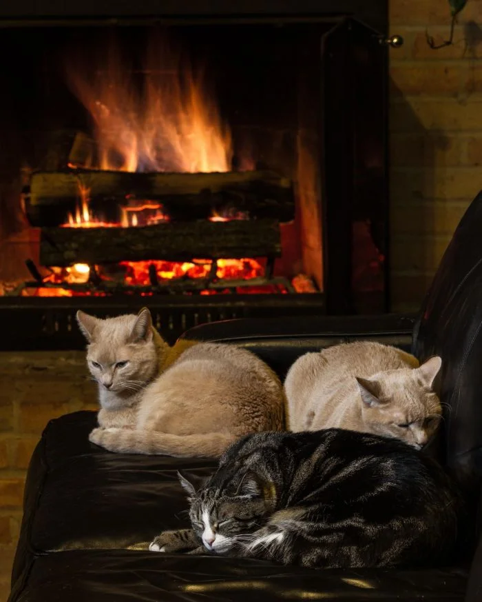 Если камин согревает тело, то душу согреют сидящие возле него котики. К огню они относятся настороженно (возможно, сказывается генетическая память), но могут часами заворожённо наблюдать за игрой языков пламени, оглашая пространство утробным урчанием. Кошка и камин – пожалуй, идеальный дуэт зимнего интерьера.