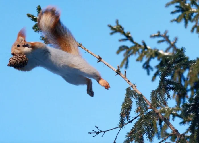 Но зачем маленьким зверькам уходить так далеко? Что ж, они и сейчас гастролируют по континенту не хуже Даши путешественницы! Когда в лесу пожар, засуха или другое бедствие, что провоцирует бескормицу, белочки берут лапки в лапки и мигрируют. Обычно недалеко, но в самых худших случаях беличье братство уходит на 300 (!) километров от родных мест. Да, многие погибнут. Но те счастливчики, что найдут новый плодородный лес, станут родоначальниками своей популяции.