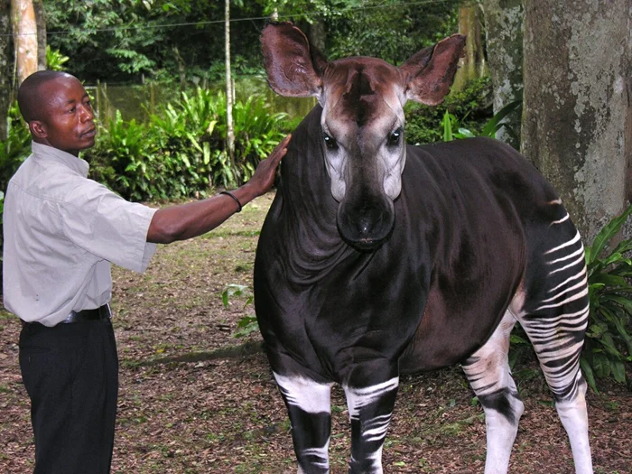 Коренные жители давно знают окапи, живущих в дикой природе около рек Итури, Арувими, Нетоко, но в мире эти существа стали известны только после 1901 года, когда губернатору страны Гарри Джонстону аборигены подарили шкуру и 2 черепа.