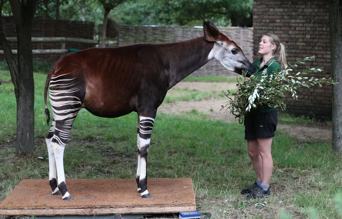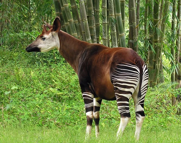 Внешний вид этих особей напоминает зебр, однако внешнее сходство не делает их родственниками. Окапи относятся к отряду парнокопытных, а зебры – непарнокопытных, к которым принадлежат лошади, носороги. Внимательно рассмотрев голову окапи, можно увидеть рожки, которые присущи жирафам.